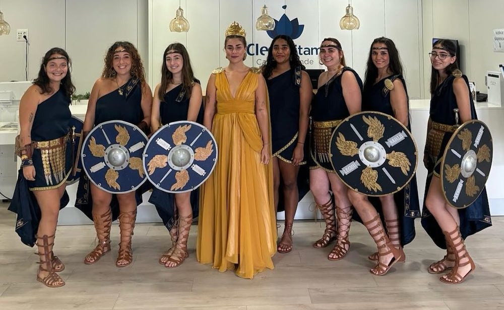 La diosa Victoria y varias ninfas de la Legio II-Sexto Digicio acudieron a la residencia de mayores 'Carmen Conde' para visitar a sus residentes y explicarles la historia de Cartagena, de las fiestas y de la legión.