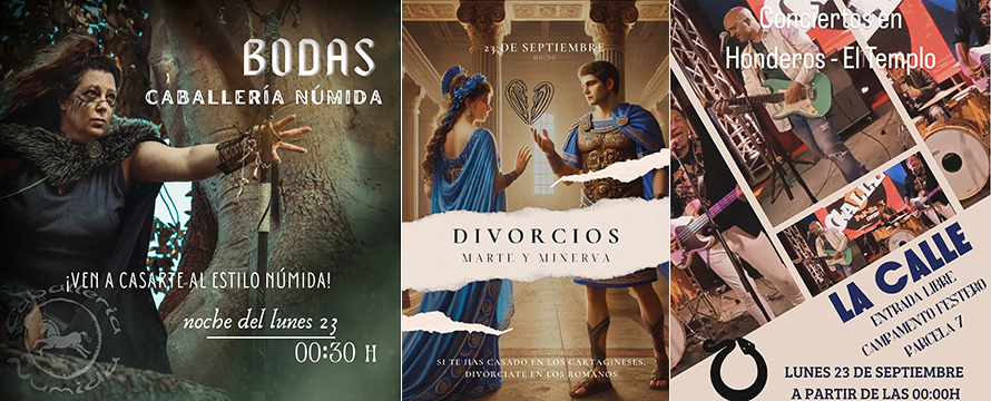 Aníbal e Himilce protagonizan en el escenario de la explanada del puerto el enlace que unió a los pueblos de Cartago e Iberia. Después, en el campamento de Carthagineses y Romanos, casi todos los grupos púnicos celebran enlaces al rito carthaginés para festeros y visitantes, ya sea en pareja, tríos, etc. También hay una mesa hondera de 'divorcios' y otra, que es novedad, en la calle romana con Marte y Minerva. También habrá concierto de 'La calle' en el grupo balear.