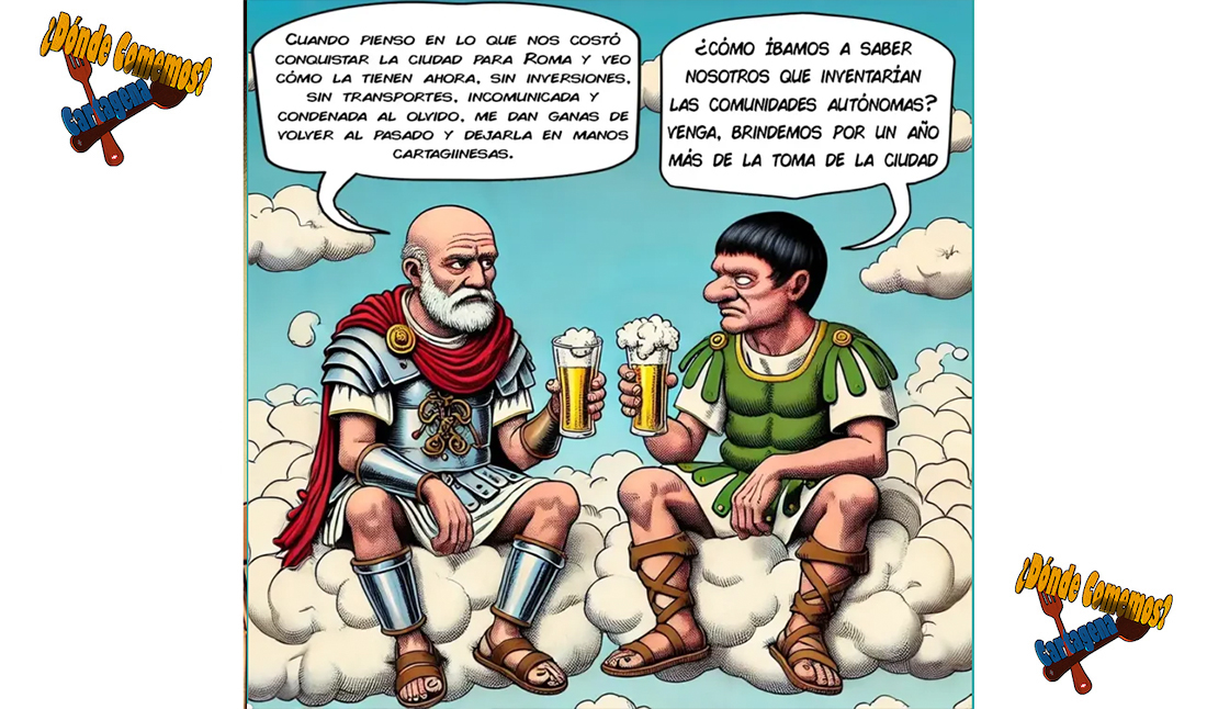Enrique Costa y Aida Belmonte, del portal '¿Dónde comemos?, Cartagena', ofrecen una nueva viñeta a los lectores, que en esta ocasión relación con las Fiestas de Carthagineses y Romanos que se están celebrando.