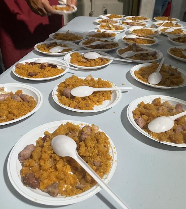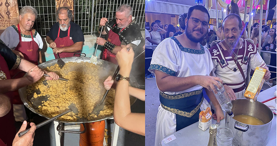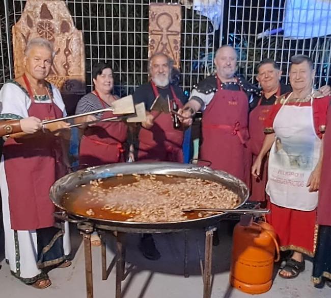 La guardia de la diosa cartaginesa no faltó a su tradicional cita del primer fin de semana con la elaboración colectiva de una gran sartenada de migas que se ofrecieron de forma gratuita a festeros y visitantes, además de la también típica elaboración y reparto entre los asistentes del 'agua de Valencia'.