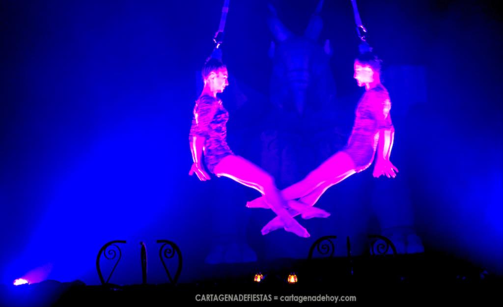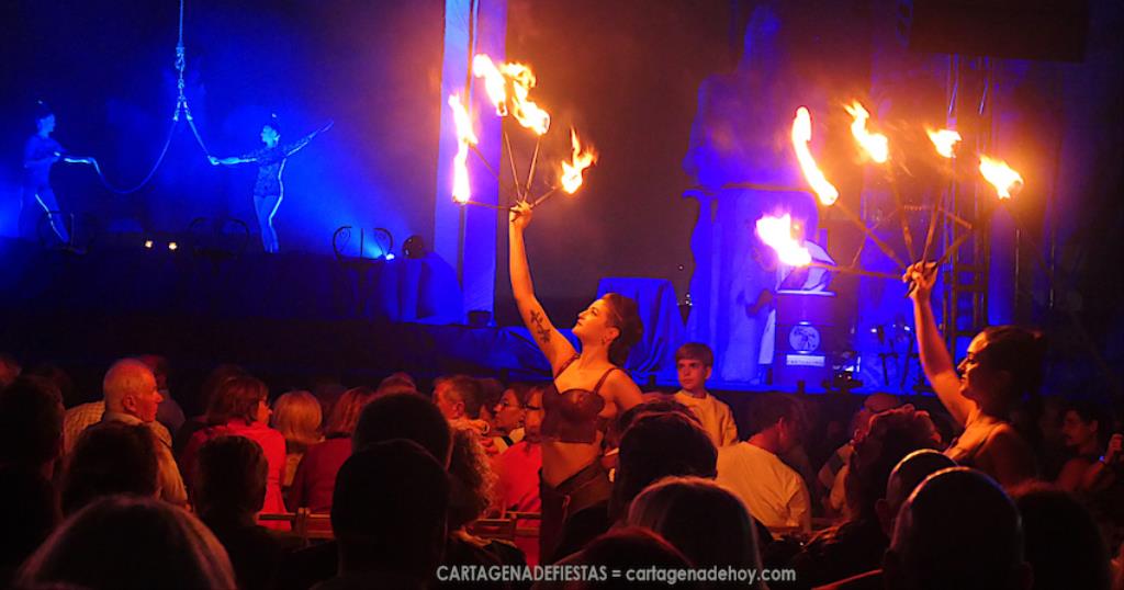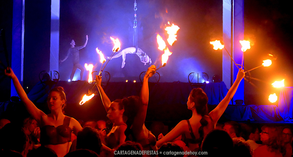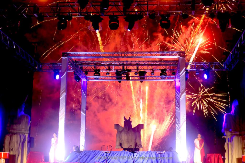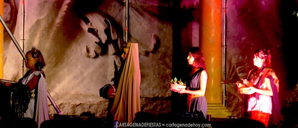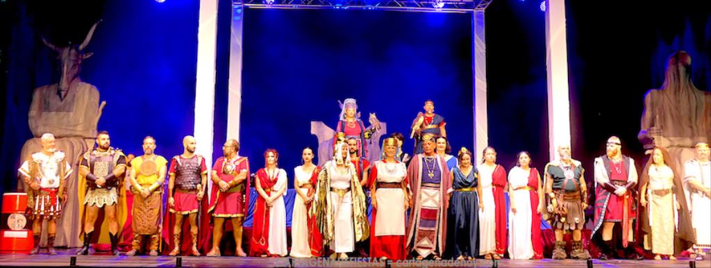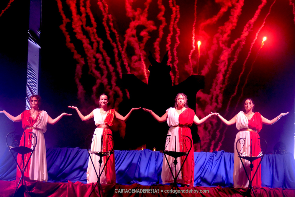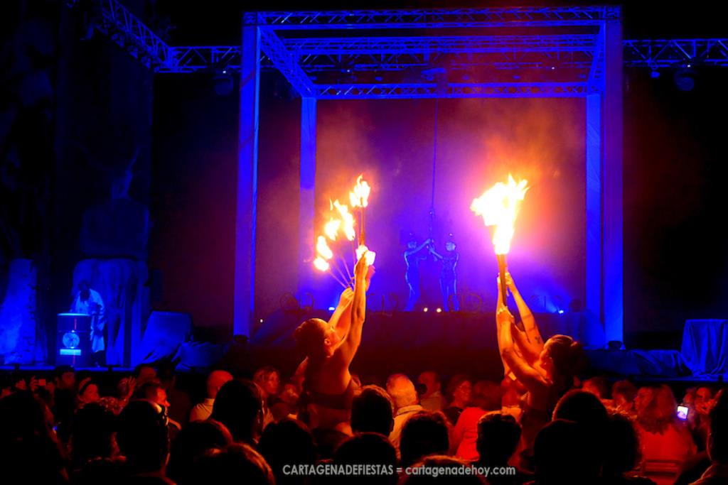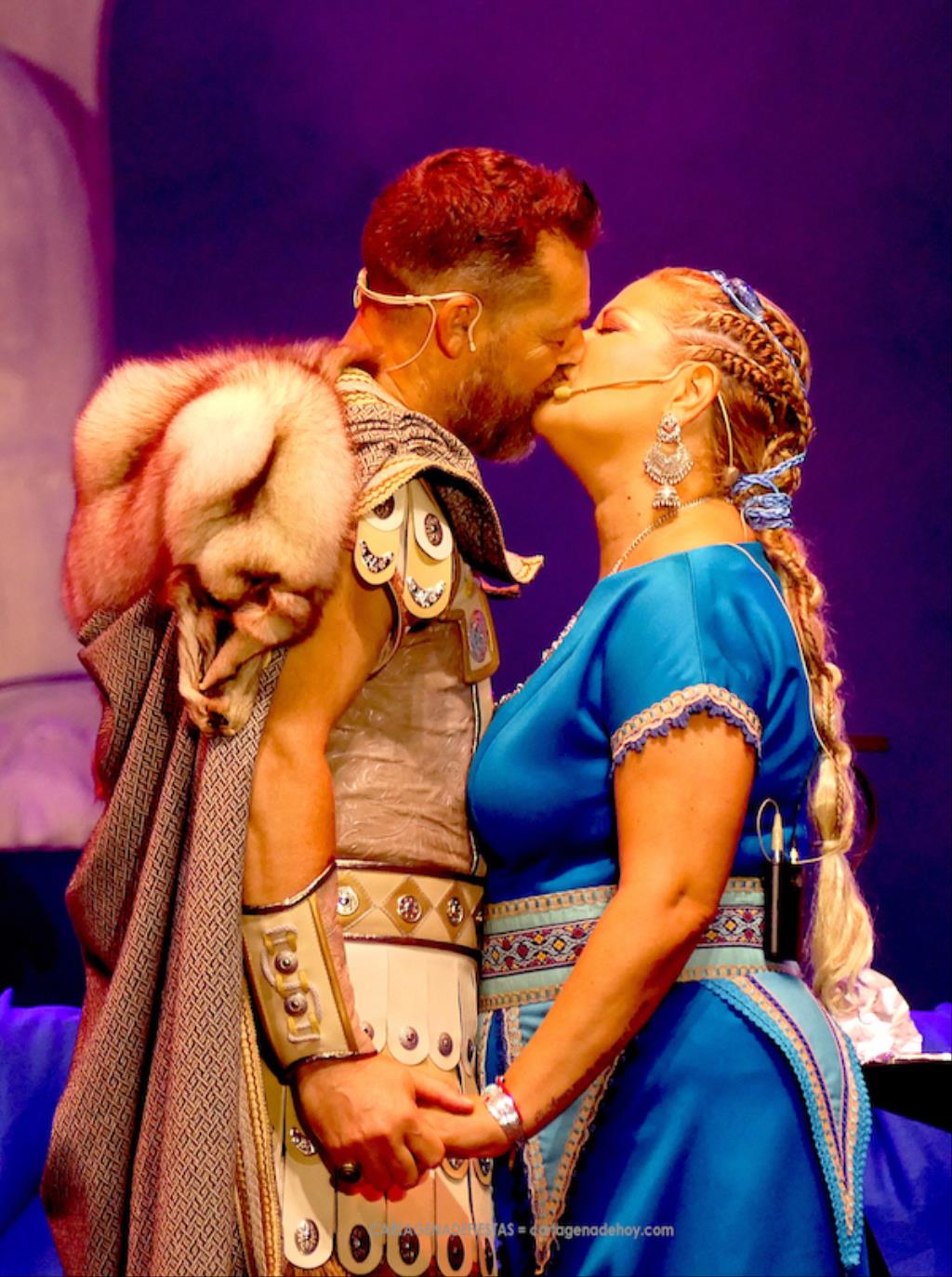 Julio Guillamón y Esther Escolar volvieron a lucir la fuerte química que existe entre ambos. La diferencia que hace un años, cuando se estrenaron en estos papeles, es que entonces estaba la presión del estreno y ahora ha sido puro disfrute, que es lo mejor en la despedida, pues el próximo año les toca a nuevos festeros. Es más, una muestra de esa felicidad que tenía estuvo en el cierre del acto, cuando Aníbal anuncia 3 días de fiestas y dispendios. Julio los amplió este año a 7 para "danzad, saltad y bailad", como pidió Himilce, a lo que se suma el tercer beso entre ambos de la noche.