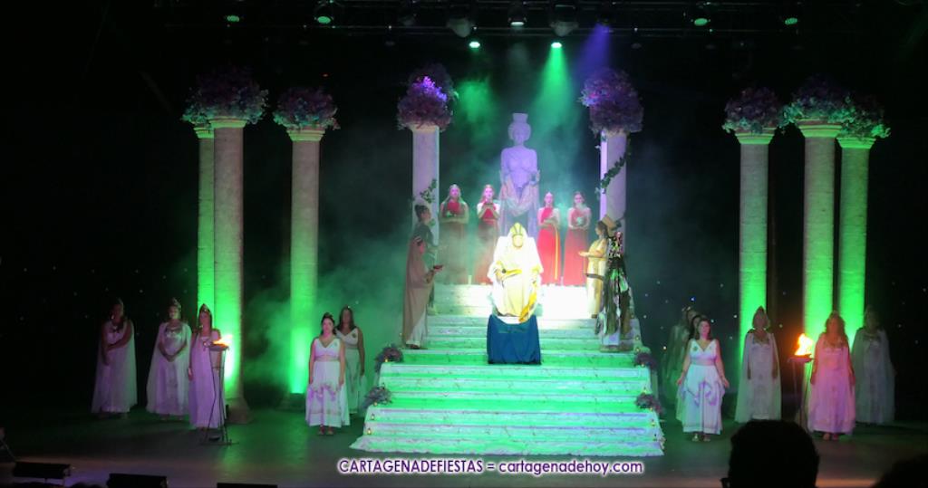 Una elástica danzarina rodeada por las sacerdotisas de Baal-Hammon son las primeras escenas que llegan a un completado graderío del auditorio más elevado de ‘La Trimilenaria’, el lugar donde más luce esta obra de apenas cuarenta minutos que ha vuelto a dirigir Adrián Quiñones.