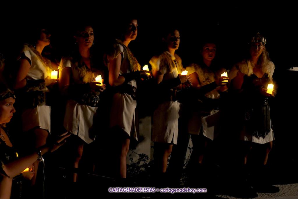 Se vacía el templo y llega Himilce (Esther Escolar) bajando con plena solemnidad la escalinata de un graderío franqueado por decenas de carthaginesas con velas, ofreciendo el conjunto una enorme vistosidad.