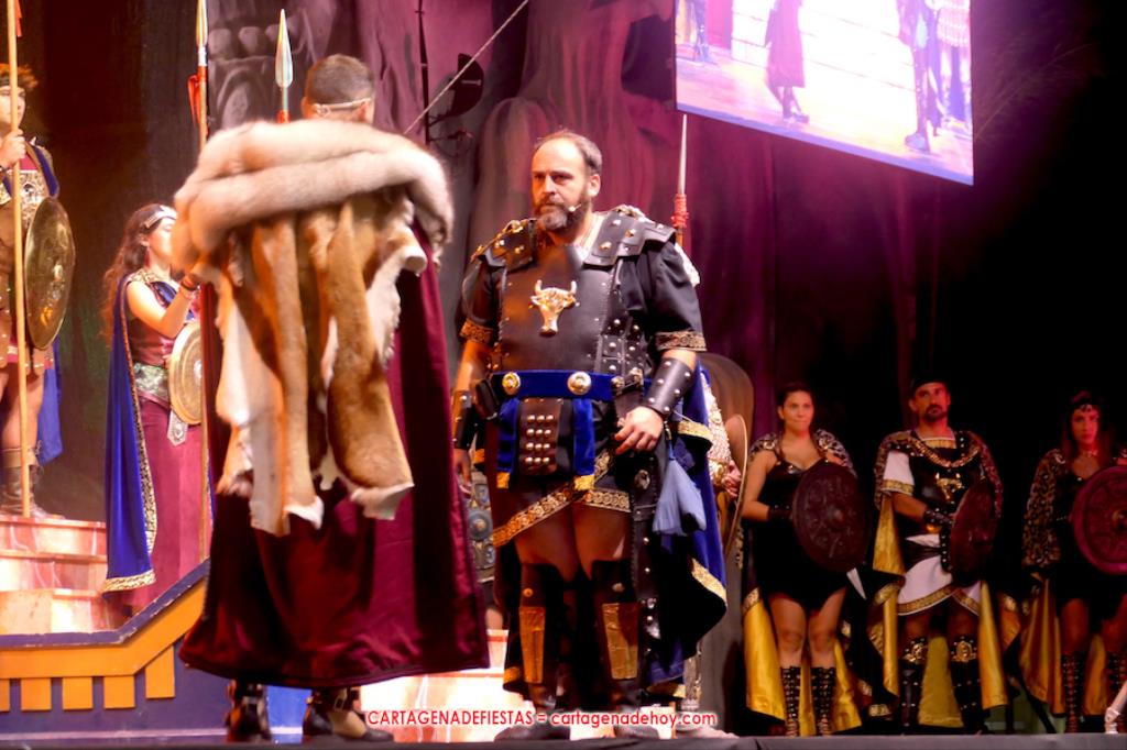 Las narraciones de libre relato sobre base histórica de las Fiestas de Carthagineses y Romanos llegaron en la noche del jueves al capítulo del momento más álgido de la ambición de un belicoso Aníbal Barca, que fue camelándose (convenciendo) a los compañeros que precisaba para lo que la historia ha considerado una de las mayores gestas, como fue cruzar los Pirineros y Los Alpes, plantándose en Roma, donde, por motivos que siguen sin estar claros, no entró.