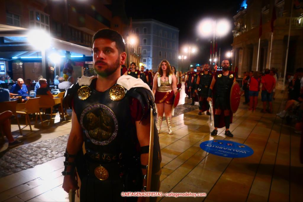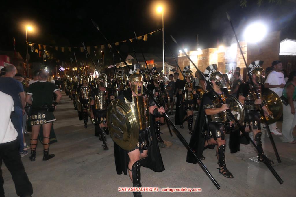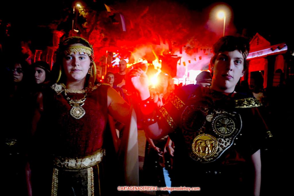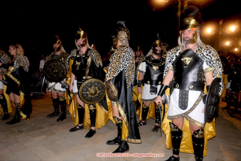 Tras la formación de un gran ejército, las huestes de Aníbal Barca partieron hacia 'el corazón' de su gran enemigo, siendo representada la marcha por más de dos mil festeros carthagineses. En la foto se observa el paso de Tropas de Asdrúbal.