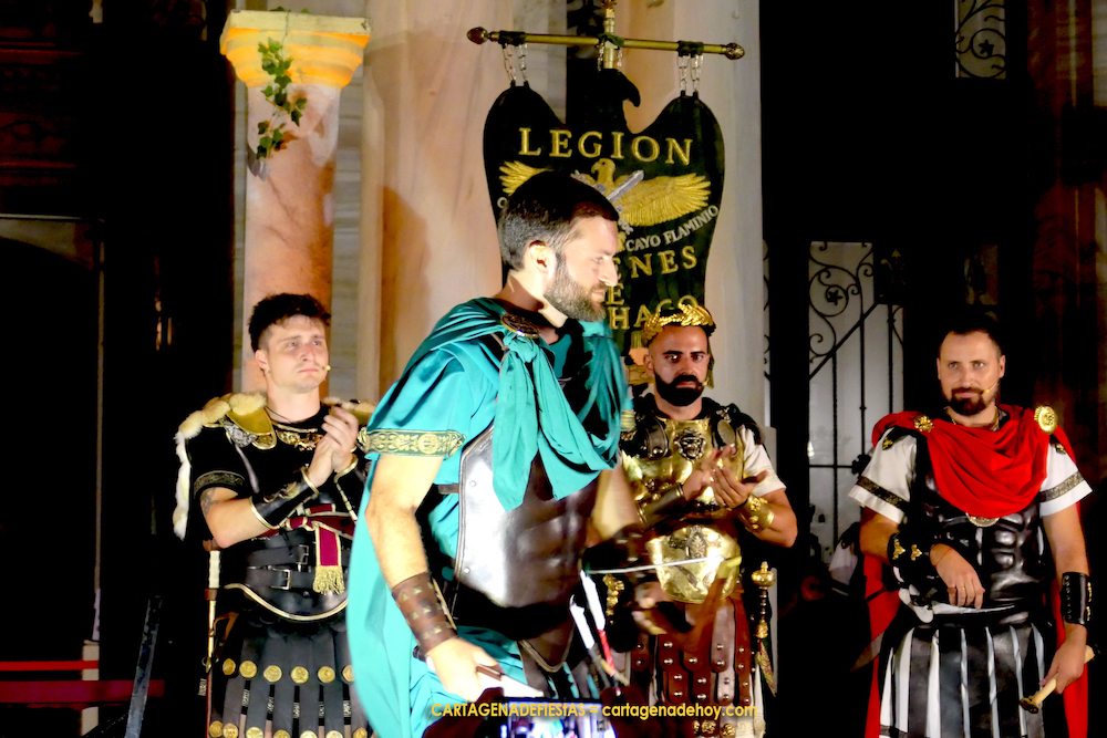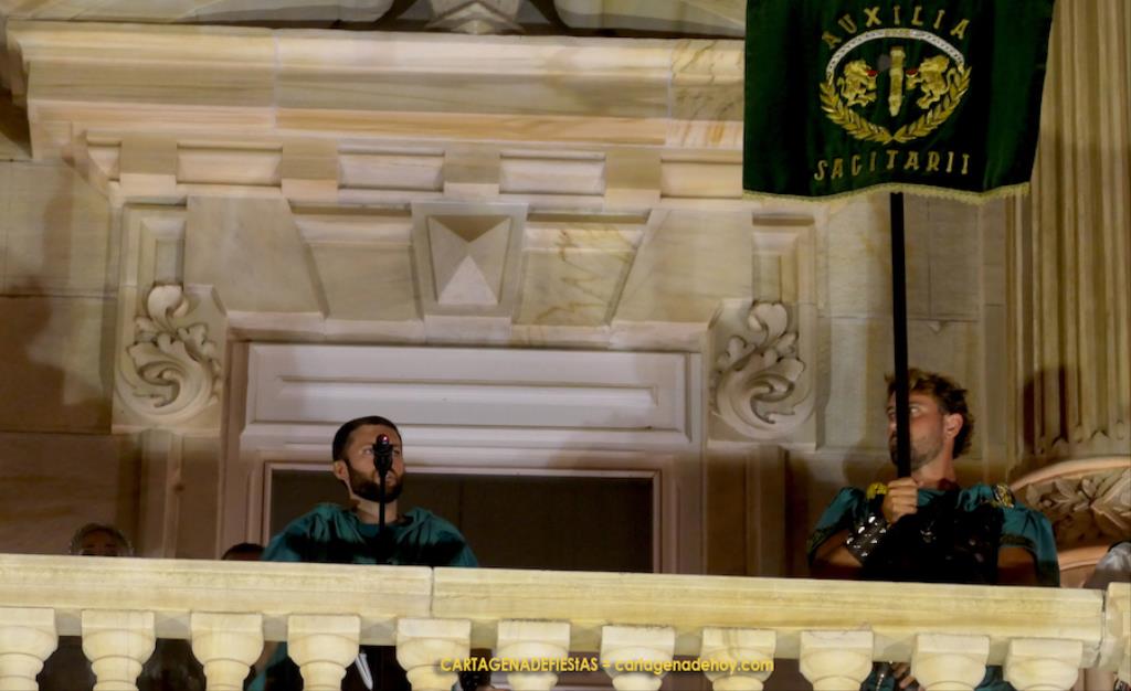 Después, desde el balcón del Palacio Consistorial, el propetor dio lectura al edicto que imponía la Ley de Roma en la ciudad, cuyos habitantes deberían asumir su lengua, usos y costumbres. También se anuncia la reconstrucción de la ciudad y la reordenación de las explotaciones de la sierra minera, además de ordenare a las legiones que desfilen para que todos conozcan su triunfo. ¡Sea Cartagena romana!