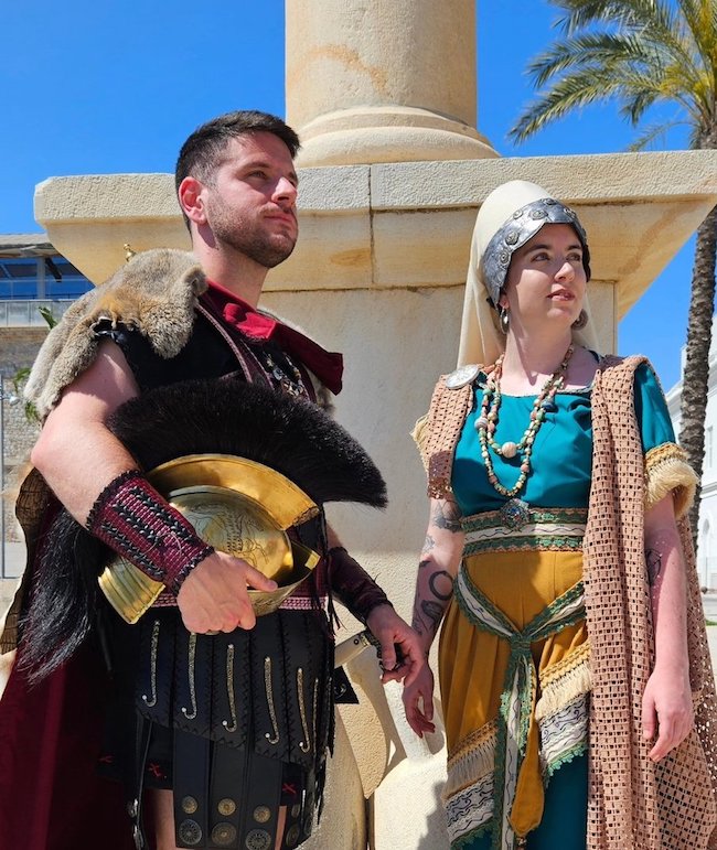 Ángel Celdrán Agüera, quien lleva en las fiestas desde 2018, fue el estratega Asdrúbal Barca en 2024, pasando en el presente a encarnar a quien lo sucedió al mando de Qart-Hadast, Aníbal Barca. "Realmente no fue un personaje que busqué, pero sí para el que sentí un apoyo inmenso que llevó a presentarme como candidato, apunta para quien siente estos festejos y lo que representan "más desde la dedicación y la pasión que de la responsabilidad", expone este joven vecino de Los Barreros, mientras que de Barrio Peral es Jenifer Villaba, quien representará a la princesa íbera que contrajo matrimonio en esta tierra con Aníbal. "Estoy con muchísima ilusión pues me llevó a querer representar al personaje el cariño que tengo a estas fiestas", manifiesta quien lleva en el terreno festero desde 2016 y que ha encarnado a Titayu dentro de su tropa. Está convencida de que no le podrán los nervios cuando llegue el inicio del 'Annus XXXVI' en septiembre, pues está disfrutando esta experiencia, al igual que sus otros compañeros de la primera fila festera de 2025.