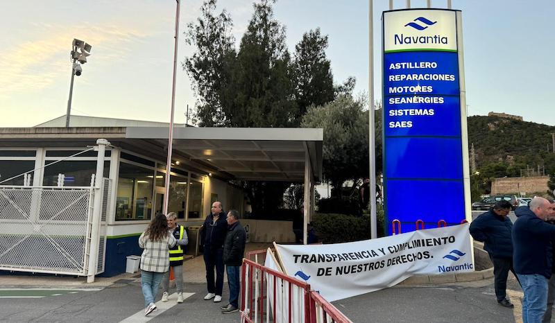 El astillero de Navantia en Cartagena es escenario en el día de hoy, 21 de noviembre, de un paro de 24 horas convocado por el Comité Intercentros, respaldado por la Unión General de Trabajadores (UGT).