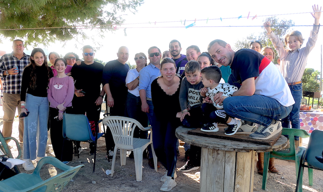 El matrimonio formado por Pencho Solano y Moni Hernández celebró un gran encuentro familiar con hijos, nueras, nietos y otros queridos allegados en la finca 'Casablanca' de Roche en torno a los manjares que salieron de una mantanza y otros sabrosos productos gastronómicos.
