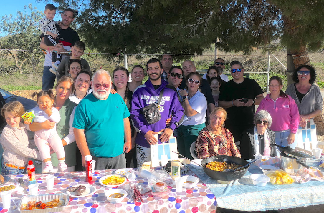 Se puede decir que Pencho Solano tiene 'la doble nacionalidad' de cartagenero y unionense, tanto por sus sentimientos como porque la vivienda está ubicada en la frontera de ambos territorios, pagando unos impuestos y servicios a Cartagena y otros a La Unión. En las fotos se observan a una amplia representación de los asistentes.