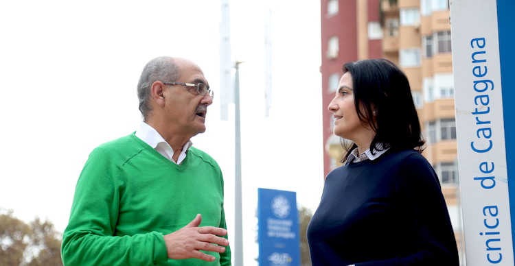 Es la conclusión del artículo premiado de dos investigadores de la Universidad Politécnica de Cartagena, que también recomienda que estas cifras sean públicas para ayudar a la toma de decisiones de sus gestores e inversores. En la foto, Isidoro y Manuela Guzmán Raja, conversando en un campus de la UPCT. Al fondo, un aerogenerador instalado por una 'start-up'
