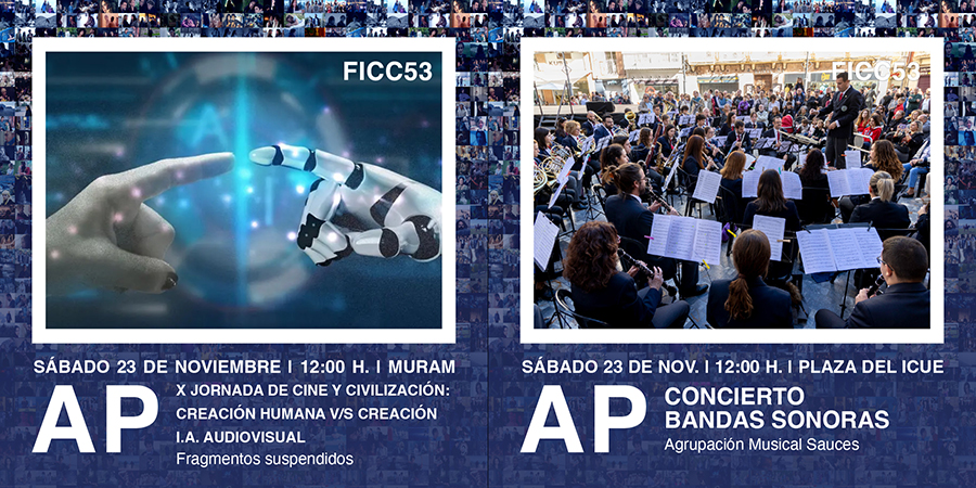 Festival Internacional de Cine de Cartagena, FICC | X Jornada de Cine y Civilización: "Creación Humana vs Creación de IA", a las 12 horas, en el Museo Regional de Arte Moderno (MURAM). Se trata de un debate centrado en el impacto de la inteligencia artificial en la creación audiovisual: sus posibilidades y limitaciones, su potencial y las perspectivas de detractores y defensores. Entrada libre hasta completar aforo.