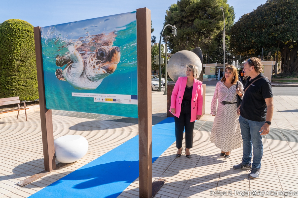 La exposición 'Cartagena, la costa de los tesoros' muestra la fauna marina en la Alameda de San Antón. La colección, obra del autor Javier Murcia, ha sido visitada hoy por la alcaldesa Noelia Arroyo y la edil Cristina Mora.