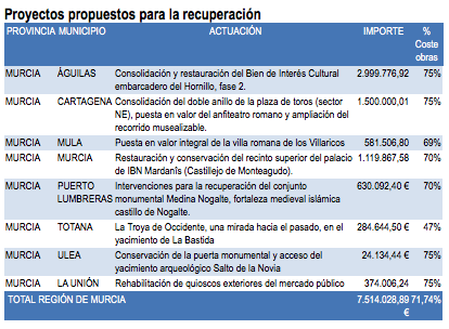 En el marco de este programa, la Región de Murcia ya había recibido 19.994.420,04 € para la recuperación del patrimonio murciano, al que se sumarán ahora los 7,67 millones aprobados.