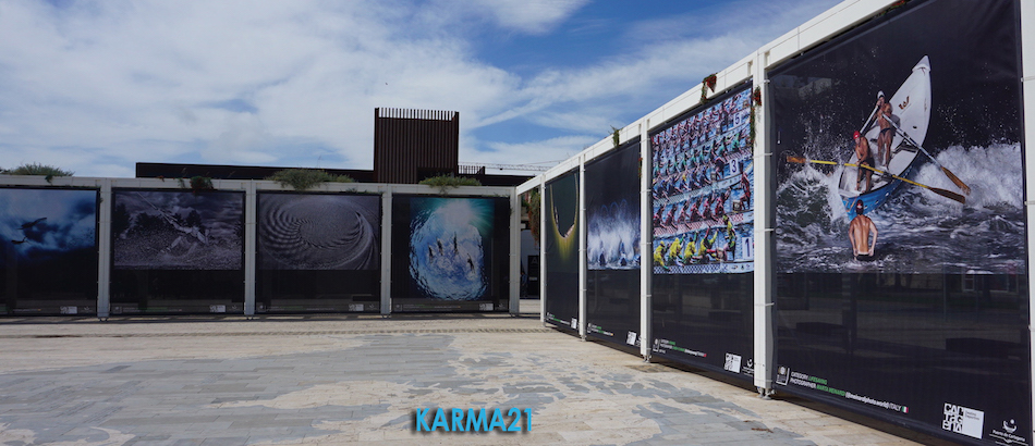 La plaza del paseo del puerto donde se encuentra el mapa mundi que tiene marcadas las Cartagena del mundo está rodeada estos días por las impresionantes fotografías que han participado en el certamen internacional ‘Ocean Power’ que se celebró en Cartagena hace unas fechas.