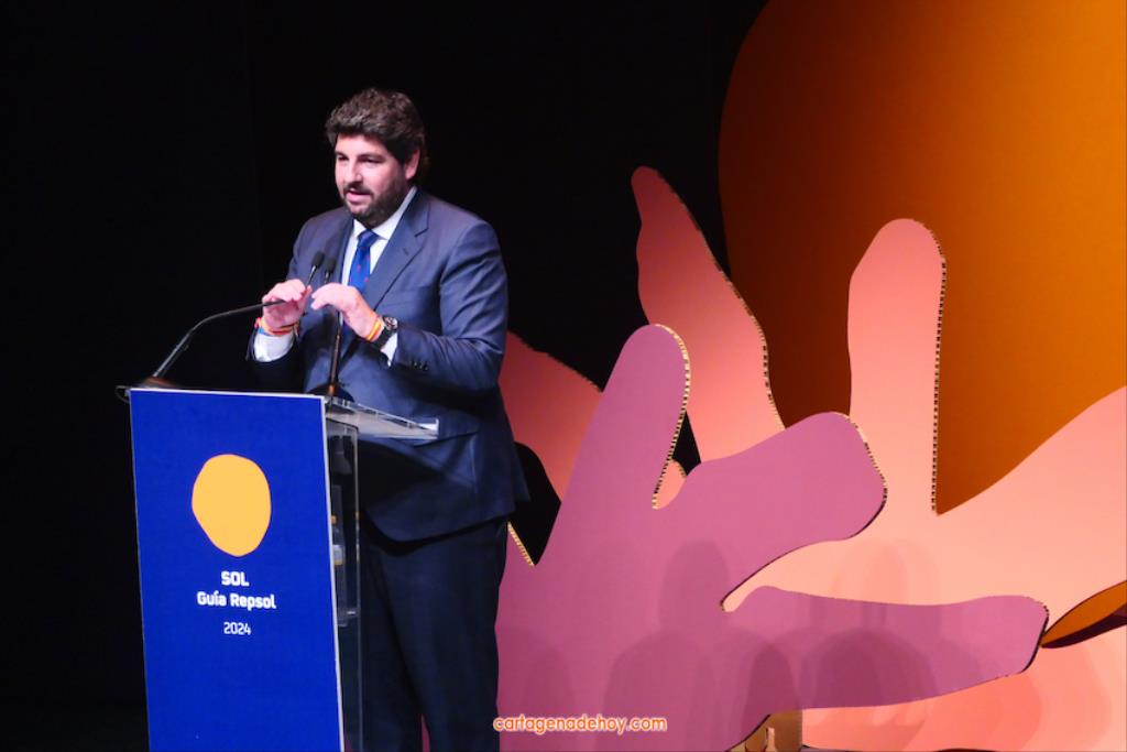 • La entrega de los Soles Guía Repsol, celebrada en el Auditorio y Palacio de Congresos El Batel de Cartagena, ha contado con la presencia del presidente de Repsol, Antonio Brufau, y del presidente de la Región de Murcia, Fernando López Miras.