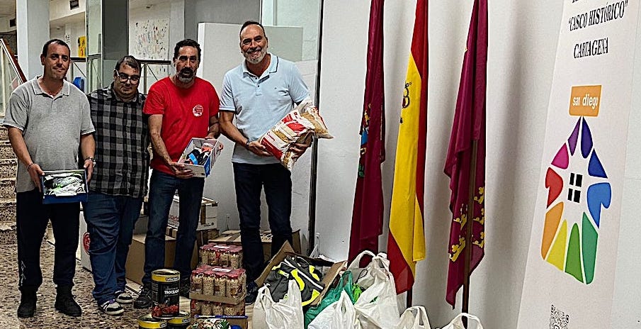 La donación de alimentos que organiza el 'Cross de las iglesias', la carrera que organiza la Archicofradía de la Virgen del Carmen, se ha realizado en esta ocasión para los damnificados de la DANA de Valencia, haciéndose la entrega en el local de la asociación vecinal Barrio de San Diego, desde donde saldrá el próximo viernes hacia su destino. Alimentos, oraciones y deseos.