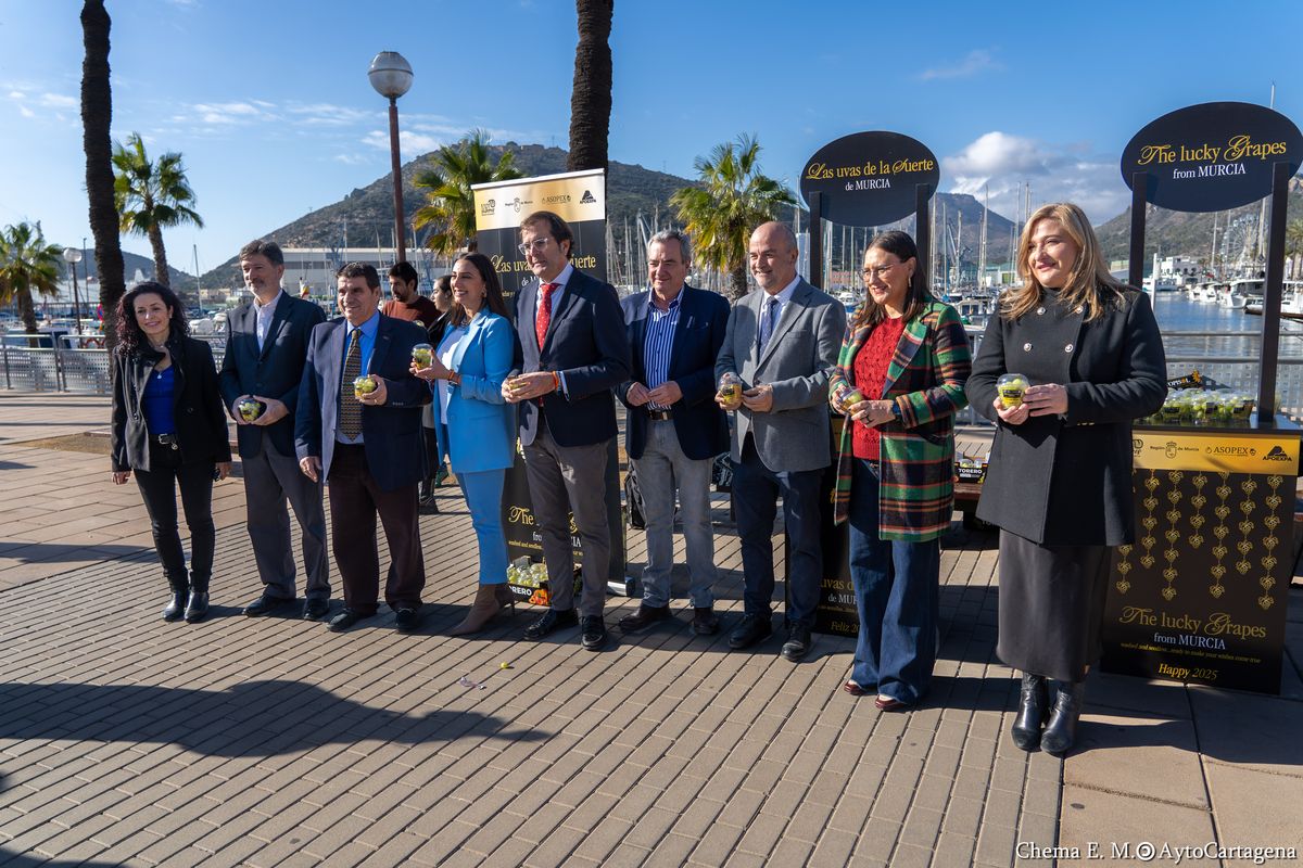 “Con esta iniciativa pretendemos contribuir a la competitividad e internalización de la economía regional en un sector clave para nuestra región como es el hortofrutícola, promocionando entre los turistas extranjeros que llegan a través de los cruceros la uva de mesa y la tradición de tomarla en Nochevieja”, ha destacado el presidente de la APC, Pedro Pablo Hernández, ante los medios de comunicación, acompañado de la consejera Agua, Agricultura, Ganadería y Pesca, Sara Rubira; la directora general de Competitividad y calidad Turística, Eva Reverte; la concejal de Turismo de Cartagena, Beatriz Sánchez; y el presidente de APOEXPA, Joaquín Gómez.