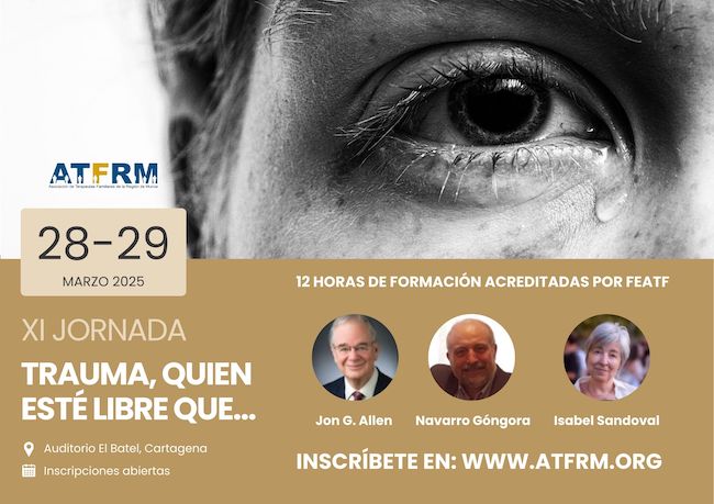 Las jornadas ‘Trauma, quien es libre de…’ , organizada por la Asociación de Terapeutas Familiares de la Región de Murcia, tendrán llugar el 28 y 29 de marzo en El Batel. Las inscripciones están abiertas. El reputado psicólogo internacional Jon G. Allen participará de manera telemática, José Navarro Góngora atenderá un caso práctico e Isabel Sandoval realizará una práctica grupal.