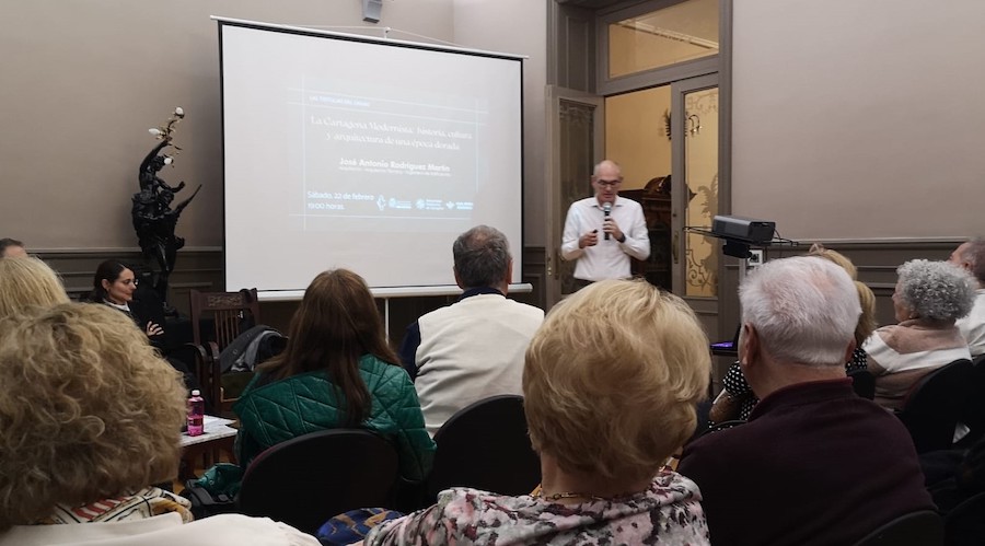 Posteriormente el historiador, doctor en Antropología y Cronista Oficial de Cartagena José Sánchez Conesa llevó al público a un fascinante viaje en el tiempo, detallando la vida cotidiana en la Cartagena modernista, las costumbres, las fiestas y el papel central de la burguesía local en la transformación urbana y cultural de la ciudad.
