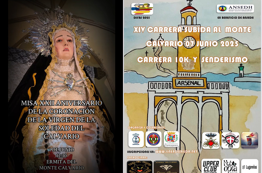 La Cofradía de la Virgen de la Soledad del Monte Calvario informa que este domingo tendrá lugar en su ermita la misa del 22 aniversario de la coronación de la imagen. También reseñar que el sábado 7 de junio tendrá lugar la XIV carrera solidaria de subida a este monte sobre una distancia de 10 kilómetros.