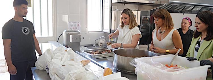 La consejera de Política Social, Conchita Ruiz, visitó hoy las nuevas instalaciones, puestas en funcionamiento desde hace un mes, junto con la concejala de Bienestar Social del Ayuntamiento de Cartagena, Cristina Mora, y el presidente de la Fundación, Alonso Gómez. Un servicio al que acuden, diariamente, 40 personas vulnerables para recoger la comida y cena del día, compuesta por ensalada, guiso, fruta y lácteos, como también para atender las necesidades de alimentación de las hasta 70 personas que pueden pernoctar en el albergue.