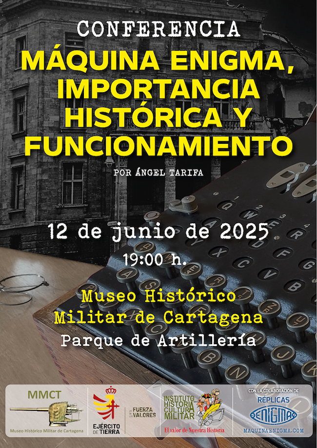La conferencia sobre la máquina de cifrado y descifrado de mensajes del mundo del espionaje fabricada en 1936 en Alemania desbordó las previsiones de asistencia de público hace unas fechas, quedándose unas cincuenta personas fuera de la sala, por lo que desde el Museo Histórico Militar de Cartagena se anuncia su repetición el 12 de junio por la tarde, a cargo de Ángel Tarifa, a la sazón de la exposición relacionada.