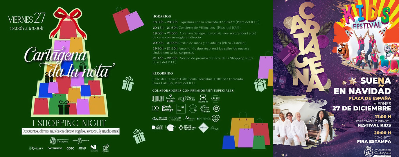 Cartagena ha celebrado la primera edición de una 'Shopping Night' navideña, que resultó en la tarde de ayer una ocasión perfecta para realizar las últimas compras y participar de la diversión que ha recorrido las calles y comercios del centro. En la foto, Antonio Hidalgo, que fue uno de los protagonistas entre las diferentes propuestas.