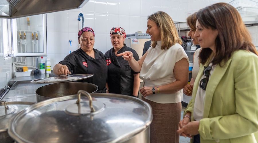 Además de la ampliación de las cocinas, subvencionada en parte por la Comunidad Autónoma, la entidad mantiene un contrato de tres años con el Ayuntamiento por un total de 810.000 euros para dar servicio a transeúntes y sin techo del municipio. En la foto, la consejera Concepción Ruiz, quien hoy ha visitado las instalaciones