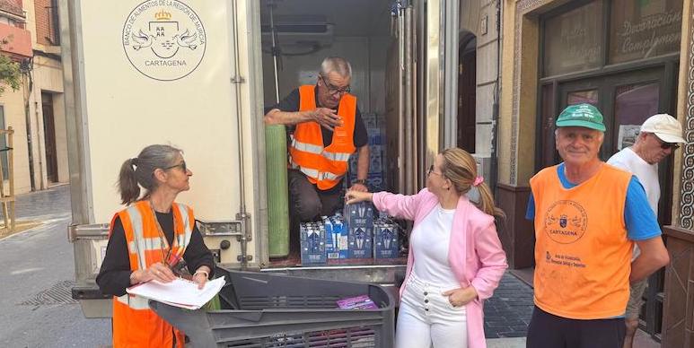 La portavoz del grupo municipal Sí Cartagena en el ayuntamiento, Ana Belén Castejón, acompañada por Alejandra Gutiérrez, portavoz de la dirección ejecutiva de Sí Cartagena, han sido las encargadas de hacer entrega al Banco de Alimentos, en esta edición de 2025, de 900 litros de leche que la formación cartagenerista ha reunido en su sede para la quinta edición de la campaña 'Píntale un bigote de leche'.