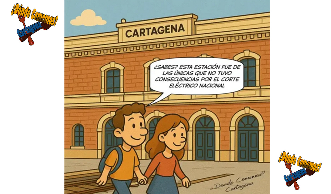 El apagón nacional del lunes ocasionó innumerables problemas en las comunicaciones, especialmente ferroviarias, pero en Cartagena, como no hay tren hacia otras provincias, no se notó. Este asunto lleva a Enrique Costa y Aida Belmonte, del portal '¿Dónde comemos?, Cartagena', a ofrecer una nueva crítica y sarcástica viñeta a los lectores.