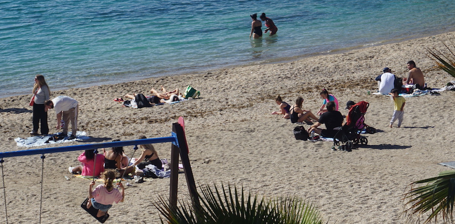 El buen tiempo se va abriendo paso en este invierno y en días soleados como el de ayer muchos optaron por acercarse a las playas de Cartagena y algunos, como se observa en las imágenes captadas en La Cortina, incluso a darse un chapuzón pese a que el agua todavía está fresca.