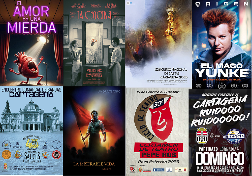 Comienzan los certámenes teatrales de La Palma y de Pozo Estrecho, llega el encuentro de bandas regionales a la ciudad, habrá propuestas de cine, magia y humor, rutas, taller de títeres, hermanamiento bolero, concierto solidario de rap con recogida de alimentos, actuaciones musicales en directo, partidos en casa del Odilo de baloncesto y del Fútbol club Cartagena (publicamos los precios de las entradas)...