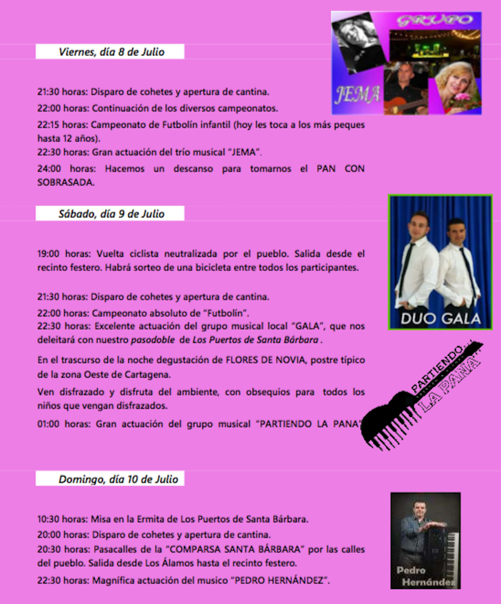 A partir del viernes llegará la recta final de las fiestas como el siguiente programa: