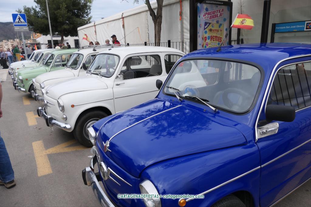 Frente al recinto de las fiestas han estacionado coches cargados de recuerdos y vivencias, dominando el Seat 600. Además, por citar otros ejemplos, los Renault 4, 5 y 8, los Seat 850, 124 y 127, el 'dos caballos', el 'escarabajo' etc., además de otros incluso más antiguos y un isocarro.
