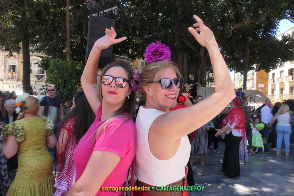 Es calle es confluencia de muchos visitantes y buena parte de bailaoras, al igual que sucede en la glorieta de San Francisco, donde hay carpas con barras cerca del escenario que tiene la estatua de Isidoro Máiquez delante. Ahí también contemplamos las ganas de bailar sevillanas y la alegría de esta jornada.