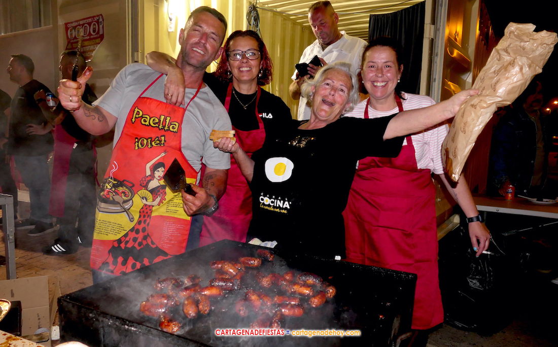 Noche ambiente, baile y apetito en Los Belones con una plaza de la Iglesia muy animada y con muchas mesas hosteleras ocupadas, además de puestos de churros, bebidas y la gran feria de atracciones. A ello se sumaba el escenario con la música de 'Acuarela', que poco a poco fue llevando gente a la pista de baile para 'mover el esqueleto'. Y luego estaban los sabrosos chorizos a la plancha con huevos fritos, que la comisión festera distribuía de forma gratuita entre los asistentes, acompañados por pan y cubierto. Todo un derroche gastronómico que sentaba muy bien y sabía mejor, como pudo dar fe el edil socialista Pencho Soto, que visitó la velada festera.