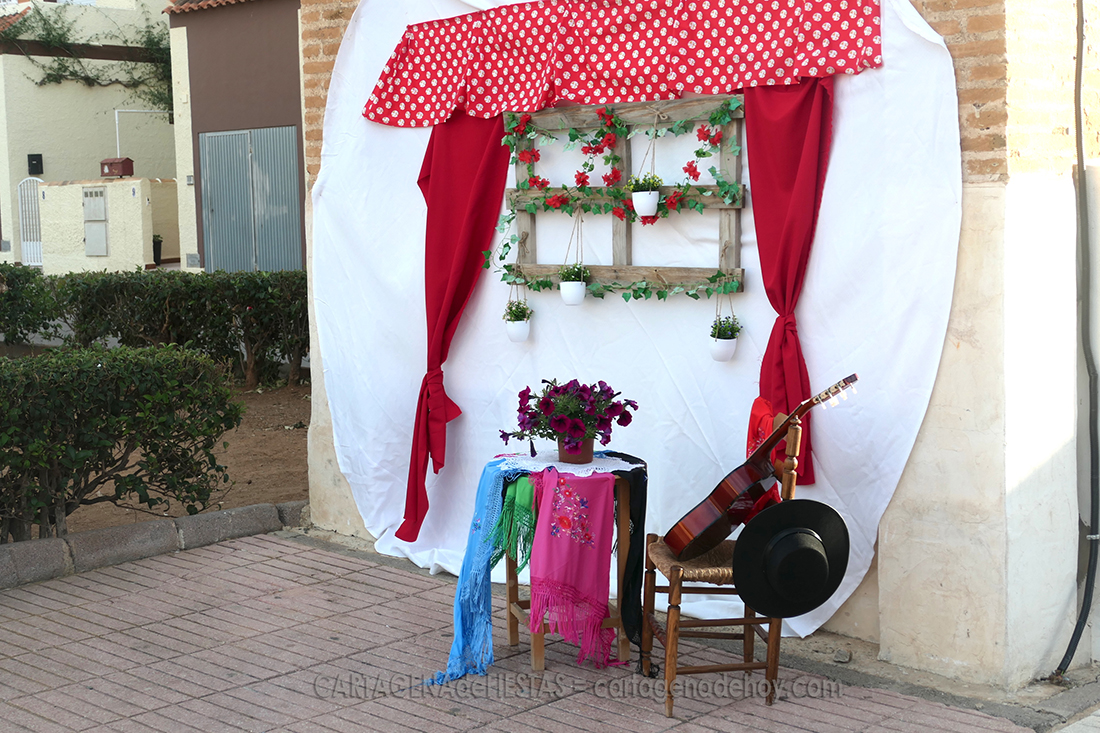 La asociación vistió diversos puntos de la plaza con elementos rocieros (muy emblemáticos y variados dentro de un montaje muy trabajado), que dieron un muy buen ambiente al lugar, enriquecido por las casetas en las que se instalaron las peñas festeras del pueblo.
