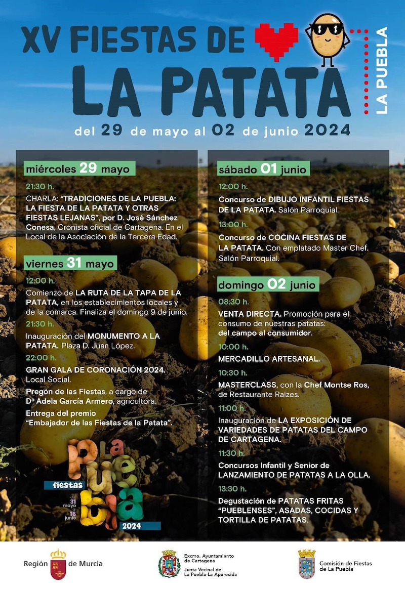 La Fiesta de la Patata siempre ha querido celebrar una sana y alegre convivencia promocionando un producto comestible cuyo cultivo goza de afamado reconocimiento en los campos de La Puebla y El Algar, lugares donde se produce una cantidad muy superior a la de otras zonas de España.