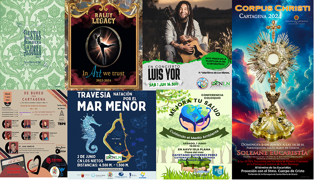 Las fiestas de La Aljorra se ponen en marcha y llega un galardonado 'Circo Legacy'. Además, hay travesía al Mar Menor desde el CN Los Nietos, comienza 'De bureo por Cartagena' en Alviento, hay una jornada medioambiental en La Azohía y el domingo es el 'Corpus Christi'. Y para el domingo por la noche, Cartagena en el 'Canal 24 horas' de TVE.