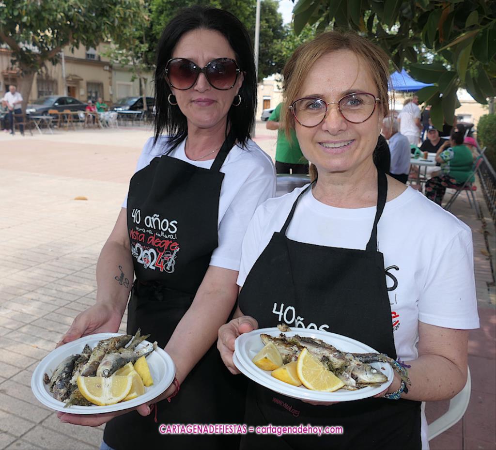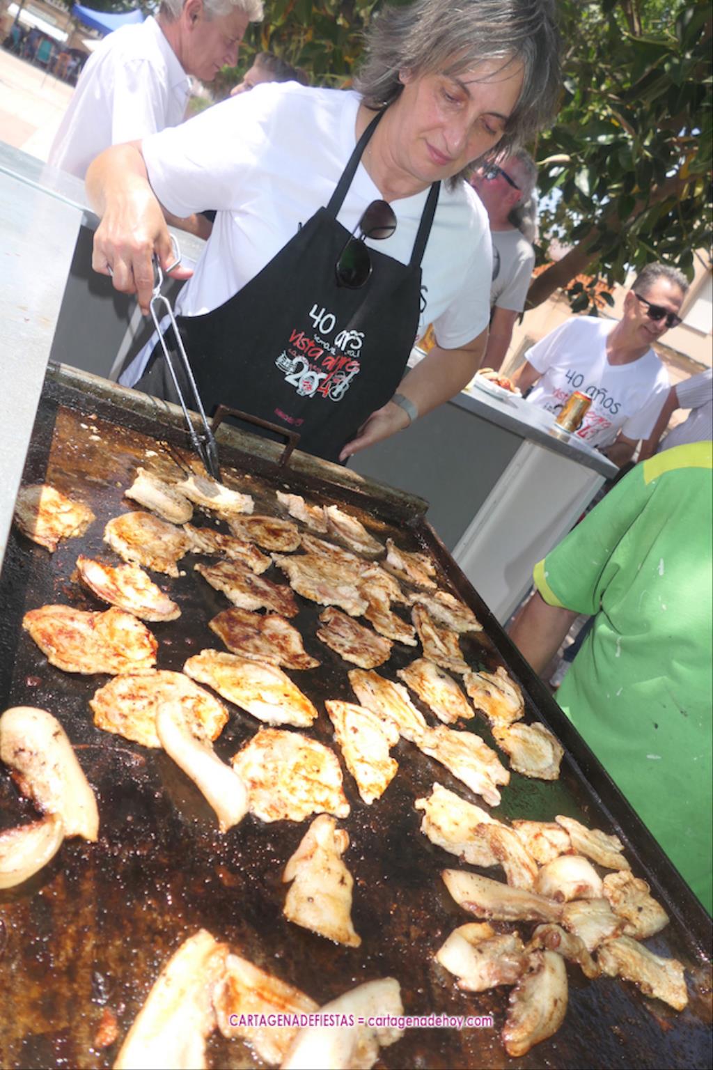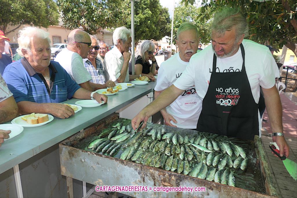 Cientos de personas han acudido a la llamada del tradicional festín gastronómico que ofrece el colectivo cultural VISAL en su ‘Semana cultural’, que esta vez ha contado con 50 kilos de sardinas y 200 kilos de productos porcinos pasados por la plancha, además de 400 barras de pan e innumerables bebidas.