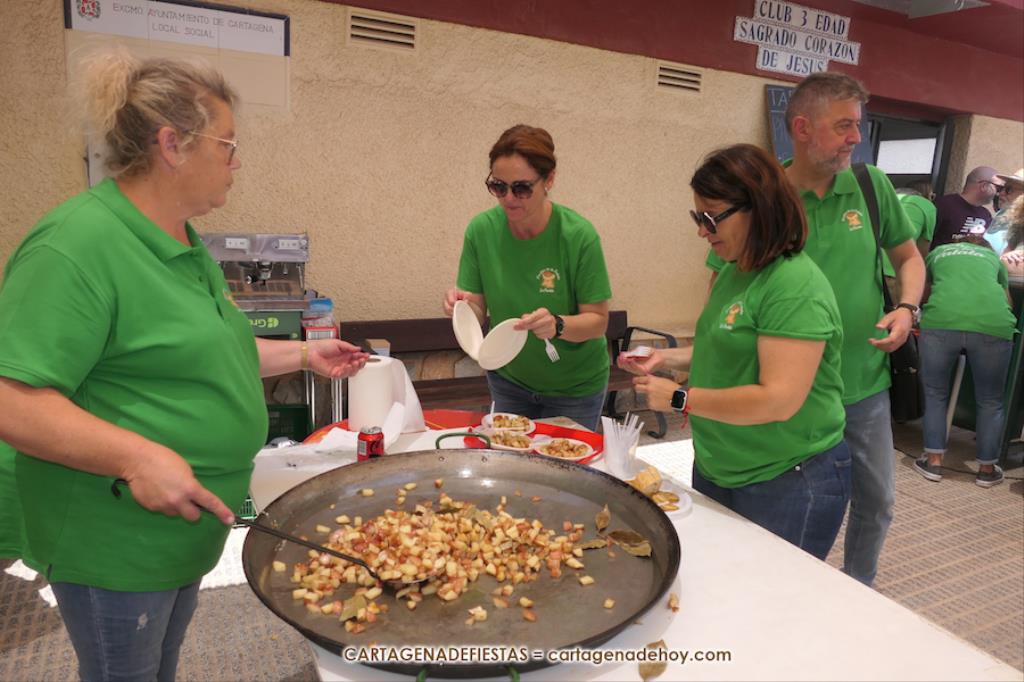 No faltó el tradicional lanzamiento de patatas a la olla, con dos singularidades este año. Por un lado, que en la clasificación de adultos hubo un empate entre seis lanzadores en el primer puesto, siendo al final Francisco López Morales el ganador. Por otra, que el mejor lanzador de toda la jornada se dio en la categoría infantil con Lucas, con seis 'encestes'.