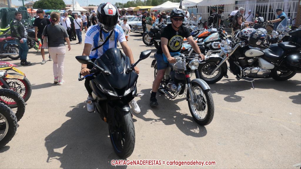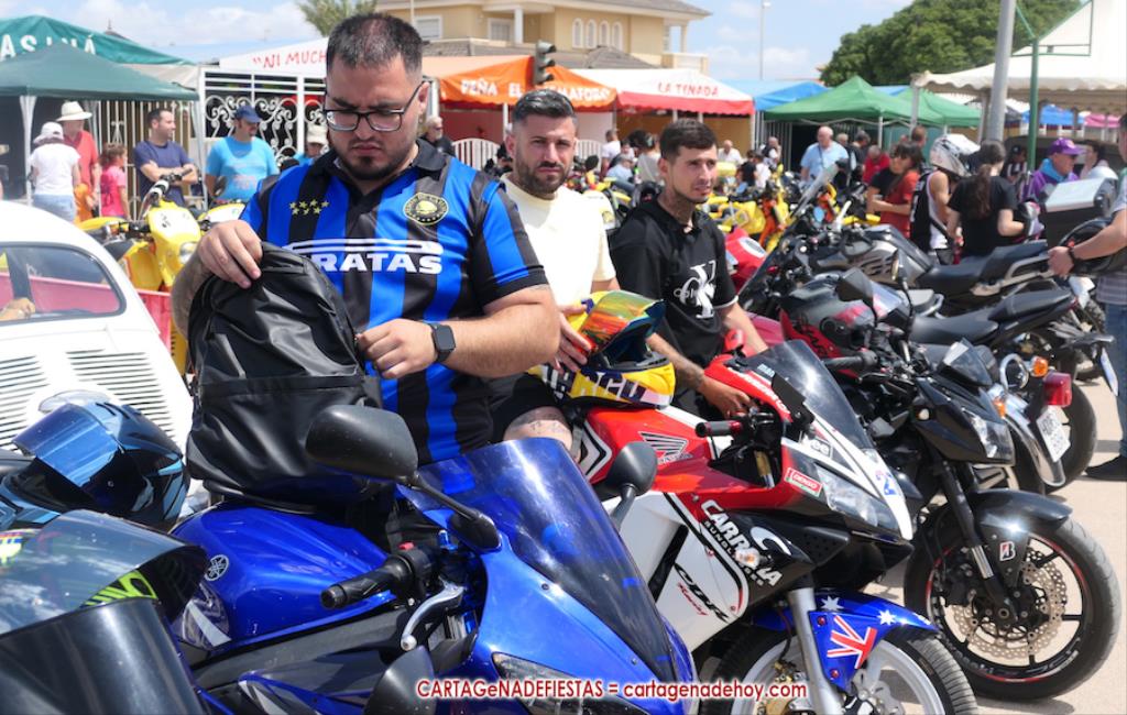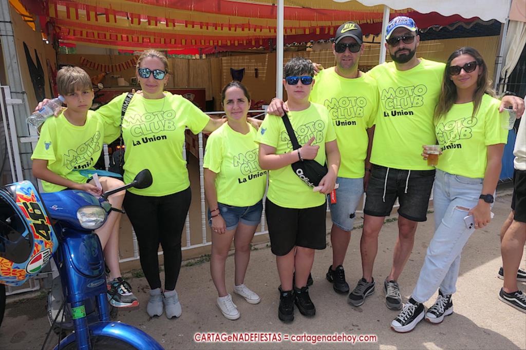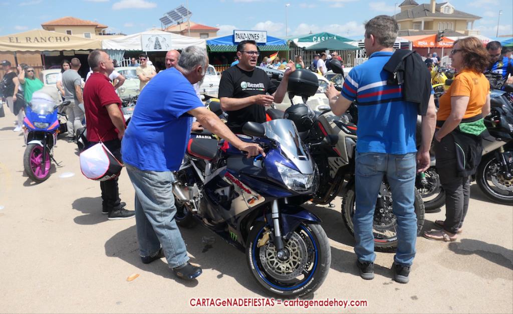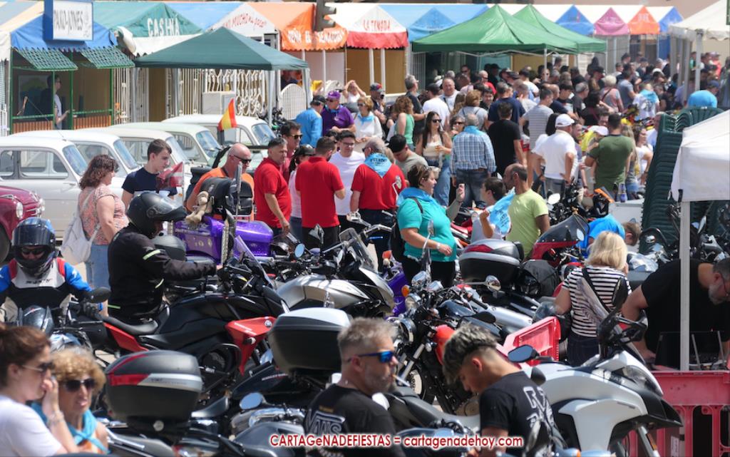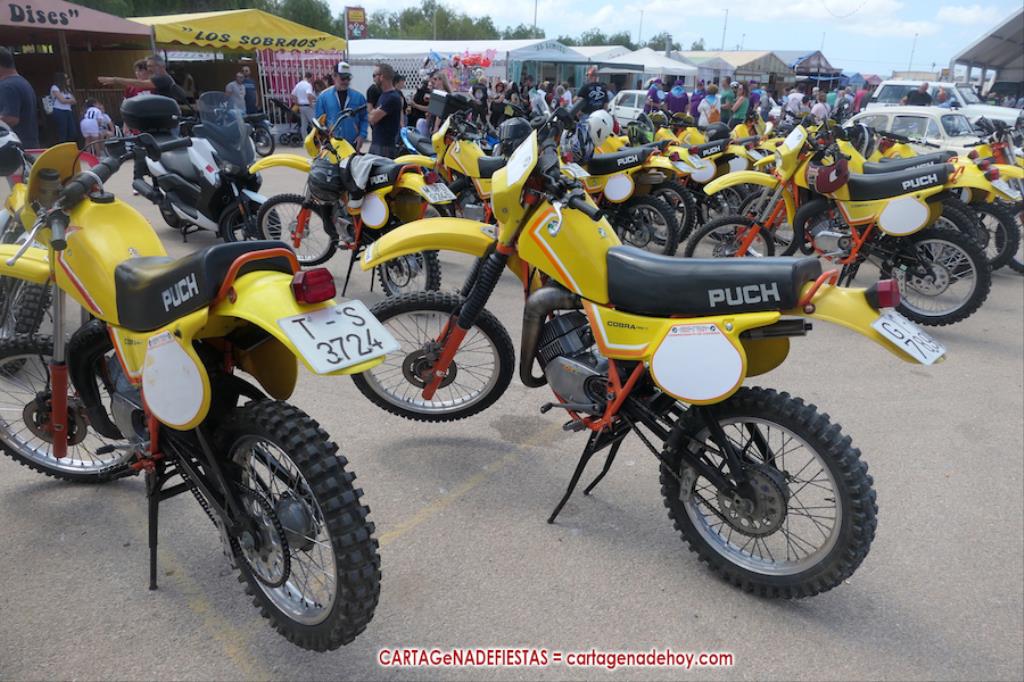 Tras una larga noche-madrugada de sábado con la 'Orquesta La Mundial Show', pocas horas estuvo vacío el recinto festero de las fiestas de La Aljorra, pues desde las diez de la mañana comenzaron a llegar centenares de turismos de distintas épocas, además de variedad de motos, incluida la segunda edición del encuentro de la marcha 'Puch Cobra', lo que volvió a llenar el campamento.