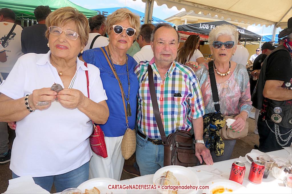 La comisión de fiestas animó la presencia de estos 'visitantes del motor' con un 'dj' poniendo música, 'gogós' de ambos sexos y, cuando regresó el contingente de una ruta por el pueblo, obsequiándole con un gran avituallamiento para participantes y visitantes en una animada y calurosa mañana.