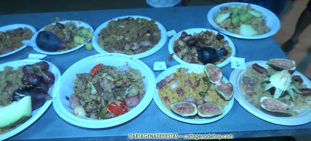Dieciocho fueron los platos que se presentaron al concurso, con elaboraciones variadas, pues, además de la base tradicional, unas iban con sardinas, otras con uvas, higos, pimientos, etc., a los que hay que añadir la de verduras con frutos secos elaborada en la barraca de 'El porrón'.