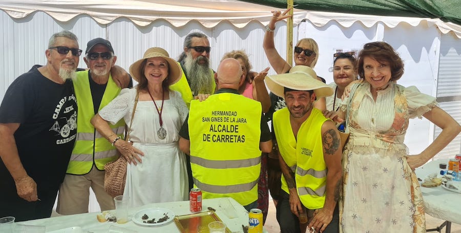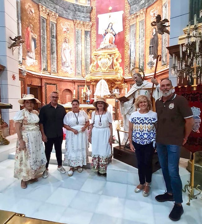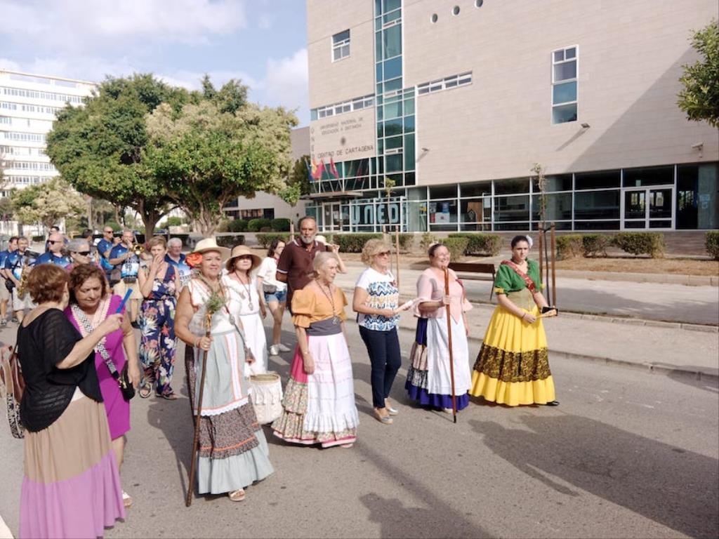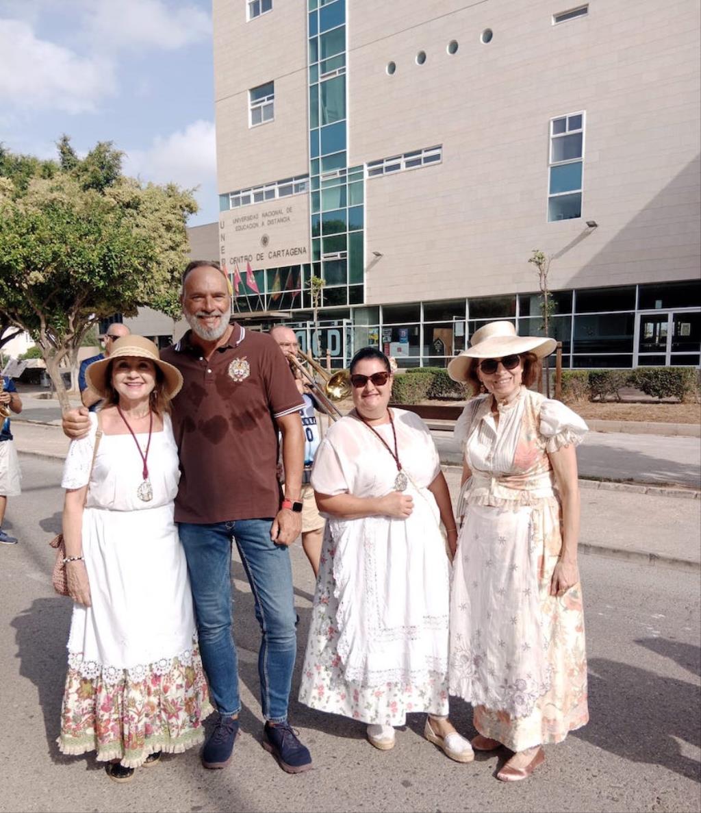 La Asociación de Mujeres Carmesí, que preside Caridad Rosique ofrece a los lectores un reportaje gráfico de diversos momentos de la jornada romera en torno al patrono, como es la simpática imagen adjunta de integrantes del colectivo femenino con componentes de Moto Club Cartagena en La Aparecida.