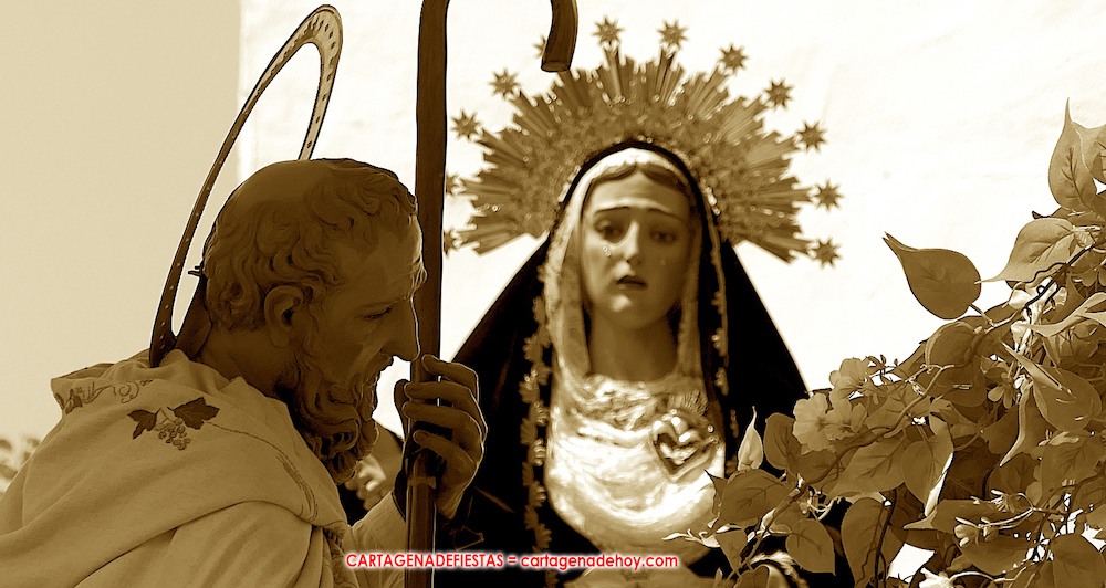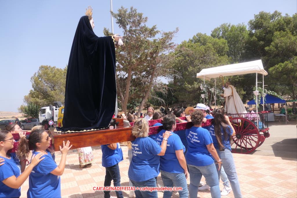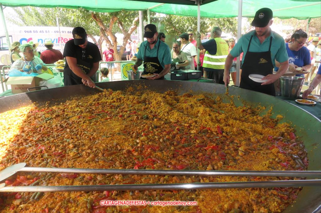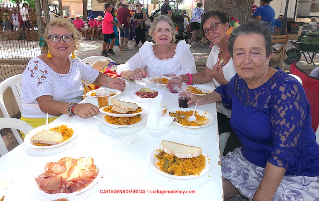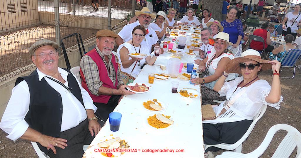 Karma21 ofrece escenas de la llegada de los romeros a la ermita unionense de Roche, donde el santo patrono cartagenero fue recibido por la Virgen de los Dolores y en cuya pinada tuvo lugar una gran convivencia en torno a un gigantesco arroz que culminó con cafe de puchero, desencadenándose durante ese alto varias 'batallas de agua'.