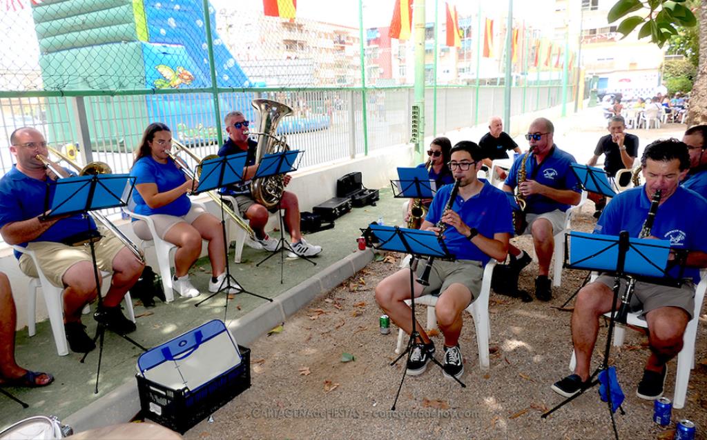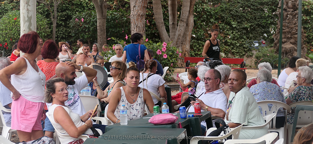 La mañana ha sido muy agradable a la sombra del arbolado del parque 'García Pagán', con una alta participación vecinal y la amenización de la banda de 'Cartagena 1990' con diferentes y populares temas musicales.