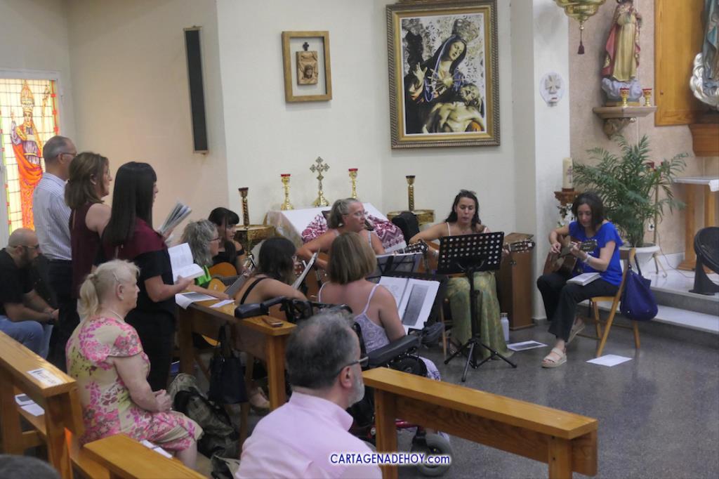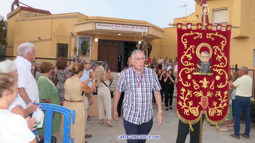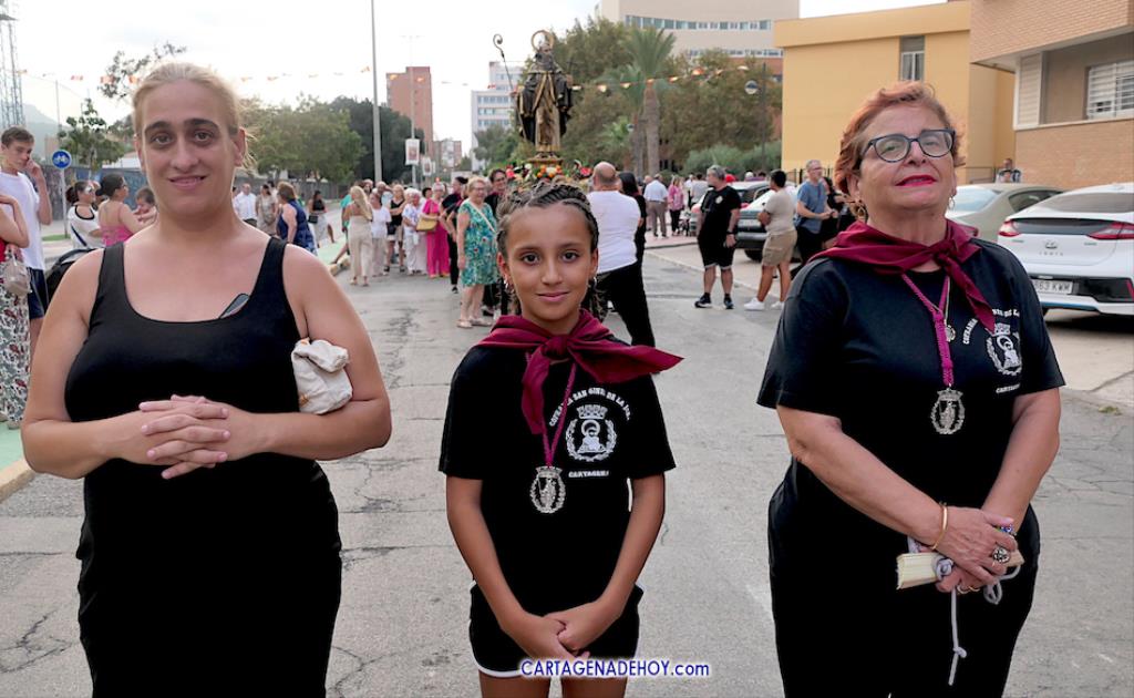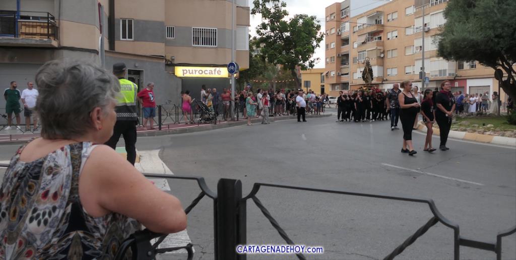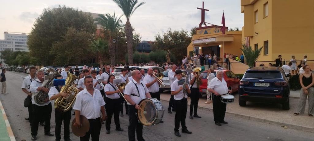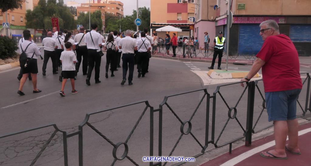 La otra novedad ha estado en la presencia de la Agrupación Musical 'Cartagena 1990', que ha recibido a la imagen haciendo sonar el himno de España y que después ha abierto la marcha por las calles de la barriada, por detrás del estandarte.