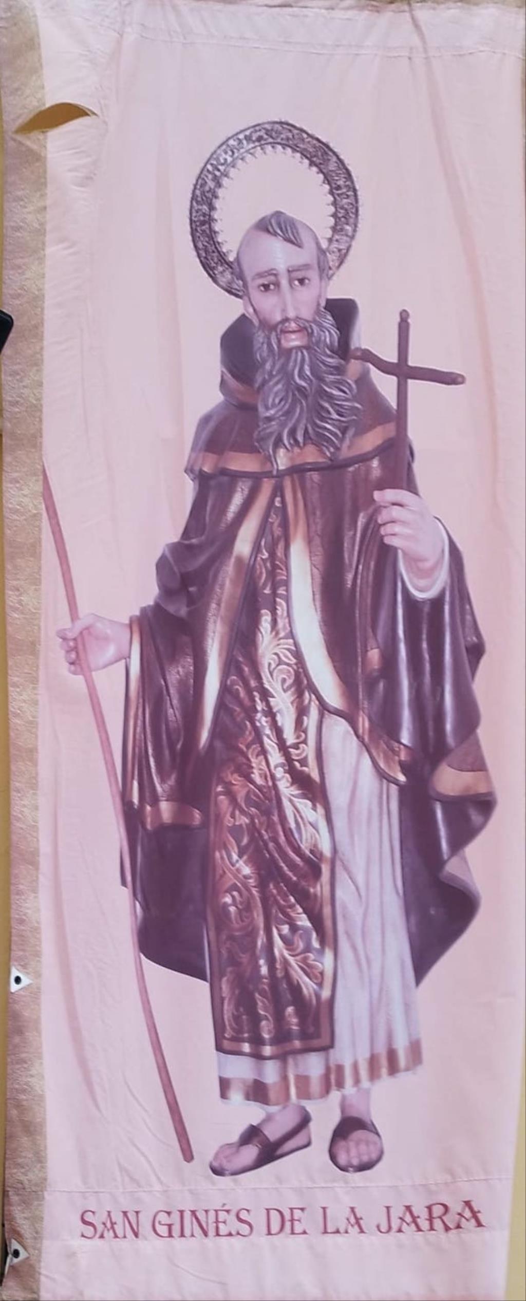 Tomates, pepinos, pimientos, naranjas y otras verduras, además de los rollicos del santo, forman desde hace dos años el frontal de la peana que lleva en procesión a San Ginés de la Jara. Todos son productos naturales, completándose el adorno con la flor de 'anthurium'.